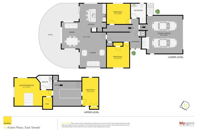 The lower level has a light-filled open plan living area, modern kitchen, large dining space and is completed with two good bedrooms, a family bathroom, double garage with internal entry and loads of storage. Upstairs there is a master bedroom and ensuite with a nice leafy outlook, accompanied by one other bedroom.