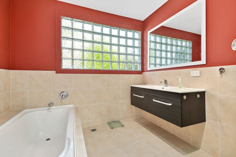 The family and kitchen area open out to a large north facing deck overlooking sun drenched gardens, allowing safe outdoor play for the family and pets, all fully fenced for security. The rear of the property has a standalone double garage with loads of storage, plentiful off-street parking and has a peaceful, tranquil bush setting.